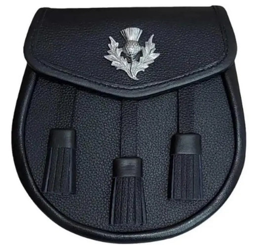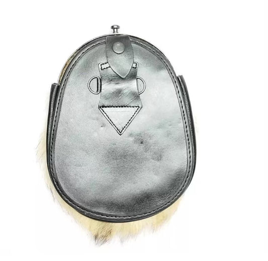 Black Vegan Sporran 100% Synthetic Fur and Vegan Leathe