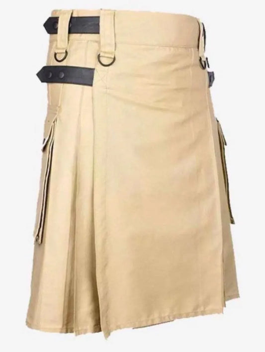 Khaki Utility Kilt: Scottish Style Cotton Kilt for Men