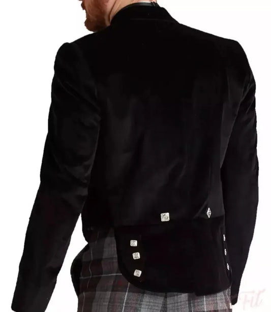 Scottish Men’s Highland Black Velvet Prince Charlie Vest Kilt Wedding Jacket