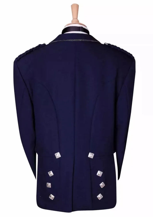 Scottish Men’s Navy Blue Prince Charlie Jacket With WaistCoat Wedding Kilt Jacket