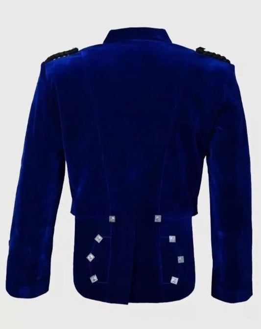 Scottish Men’s Prince Charlie Blue Velvet Wedding Vest Kilt Jacket