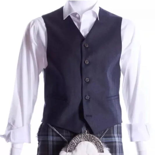 Scottish Men’s Navy Blue Wool Argyle Kilt Jacket With Vest