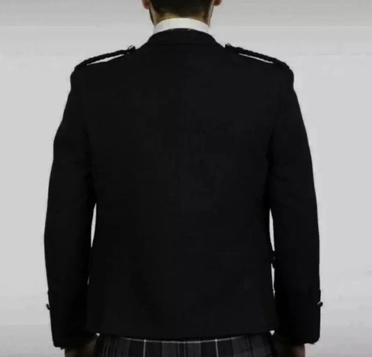Scottish Men’s Wedding Black Wool Argyle Kilt Jacket With Vest