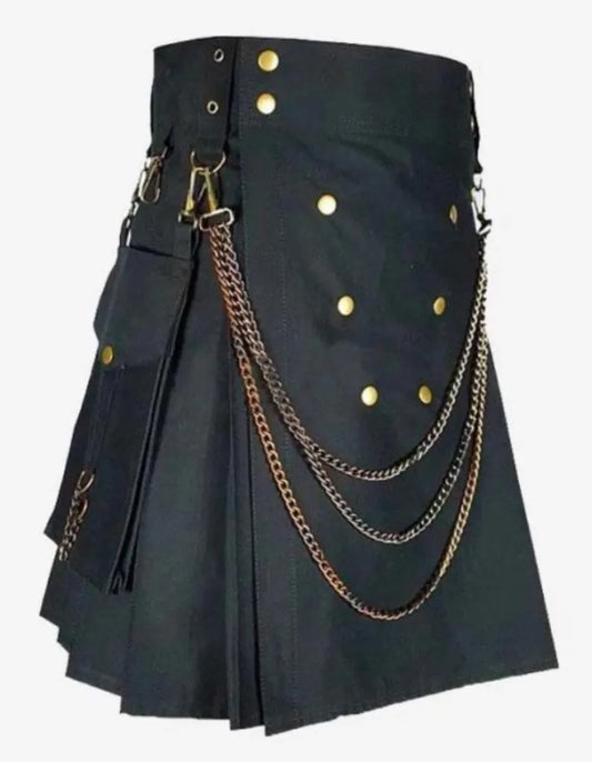 Scottish Modern Warrior Black Fashion Kilt For Man’s With Silver Chains