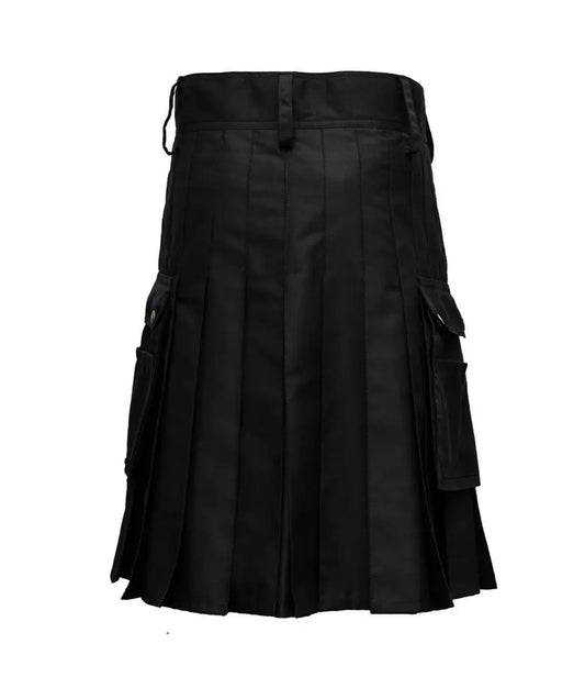Scottish Men’s Utility Kilt With Cargo Pockets HandMade Cotton Black Tartan !