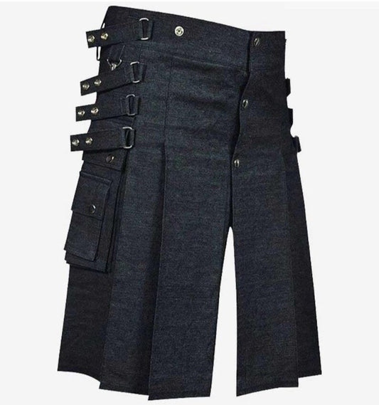 Scottish Modern Black Denim Utility Kilt For Men’s !