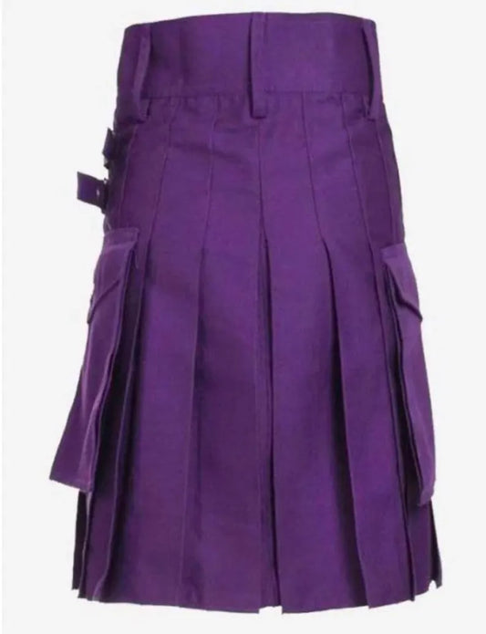 Scottish Purple Utility Kilt With Side pockets For Men’s