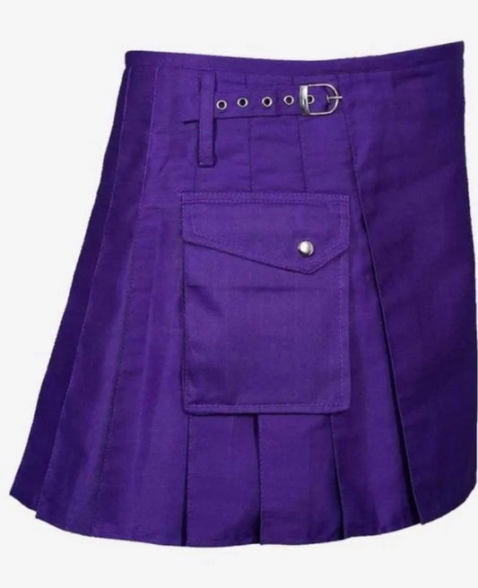 Scottish Women kilt IN Jeans Purple Cotton Fabric