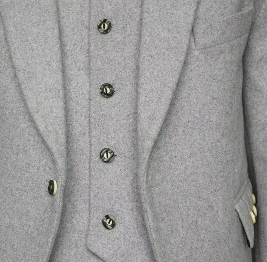 Men's Light Grey Wool Kilt Jacket & Waistcoat: Scottish Wedding Outfit
