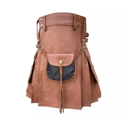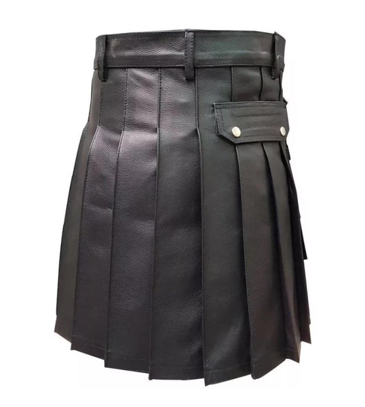 Leather Kilt For Men’s with Belt Closer and Side Buckel Design With Huge Pocket
