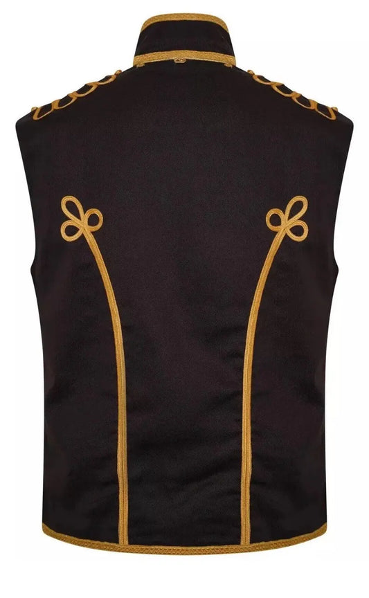 Men’s Black Sleeveless Military Drummer Parade Hussar Jacket Adam Luxe Vest