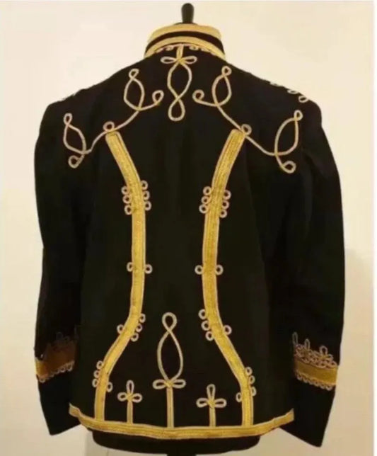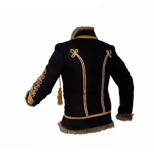 Men’s Black Military Uniform Napoleonic Tunic Pelisse Jimi Hendrix Hussar Jacket Men’s