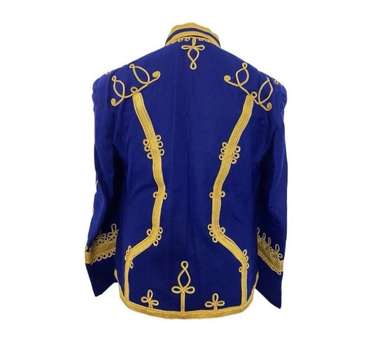 Men’s Royal Blue Military Uniform Napoleonic Tunic Pelisse Jimi Hendrix Hussar Jacket Men’s