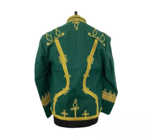 Men’s Green Military Uniform Napoleonic Tunic Pelisse Jimi Hendrix Hussar Jacket Men’s