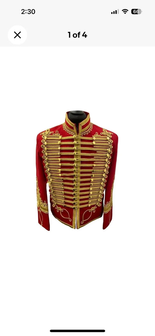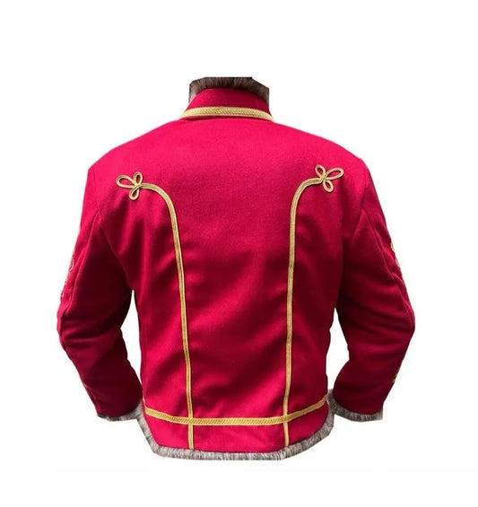 Men’s Red Military Uniform Napoleonic Tunic Pelisse Jimi Hendrix Hussar Jacket Men’s