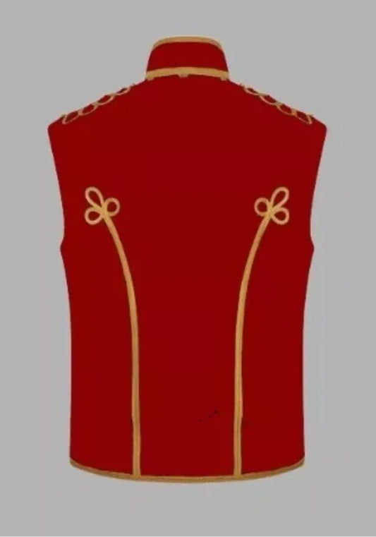 Men’s Red Sleeveless Military Drummer Parade Hussar Jacket Adam Luxe Vest