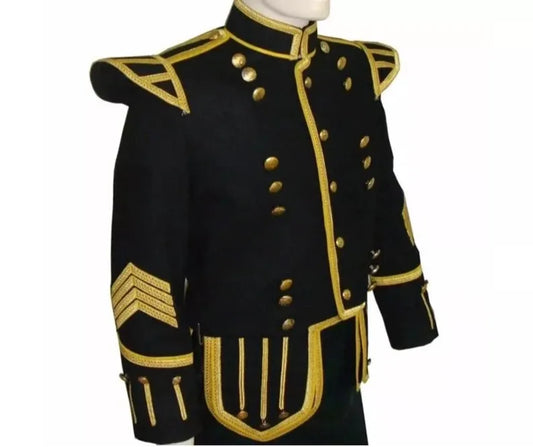 Men’s Scottish Highland Black Military Uniform Double kilt 100% Wool Drummer Piper Doublet