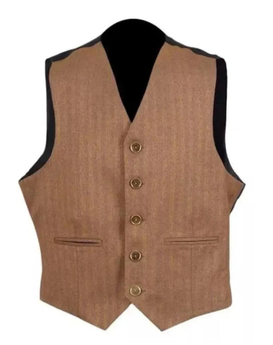 Scottish Men’s Argyle Tweed Beige Colour Coat With Vest Wedding Jacket