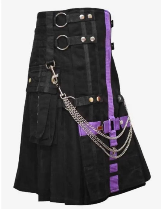 Scottish Men Fashion Black Wedding Modern Utility Kilt For Men