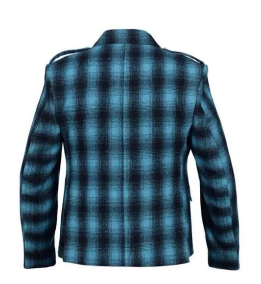 Scottish Men’s Argyle Tweed Blue Colour Coat With Vest Wedding Jacket