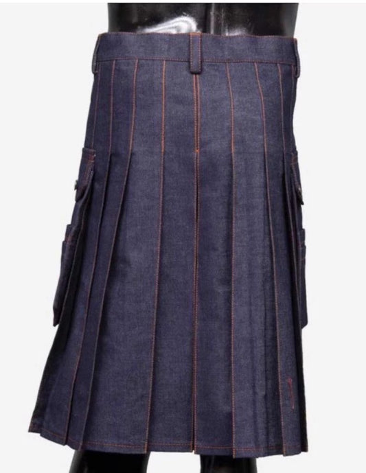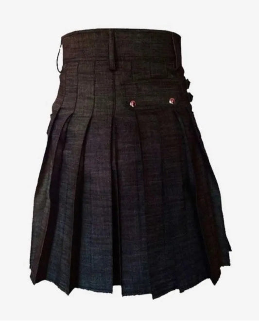 Scottish Luxury Black Denim Kilt With Cargo pockets For Men’s !