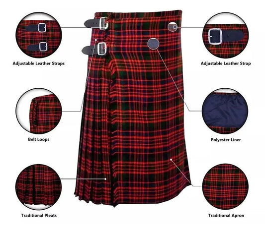 Scottish Macauley Red Modern Tartan Kilt For Men Custom Handmade Traditional 8 Yard kilts