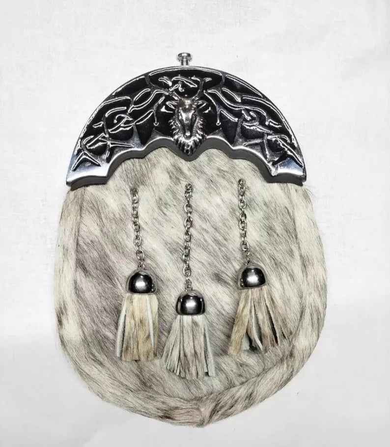 Add a touch of heritage and refined craftsmanship to your outfit with this Calf Skin Kilt Sporran, the perfect blend of traditional Scottish style and practical functionality.