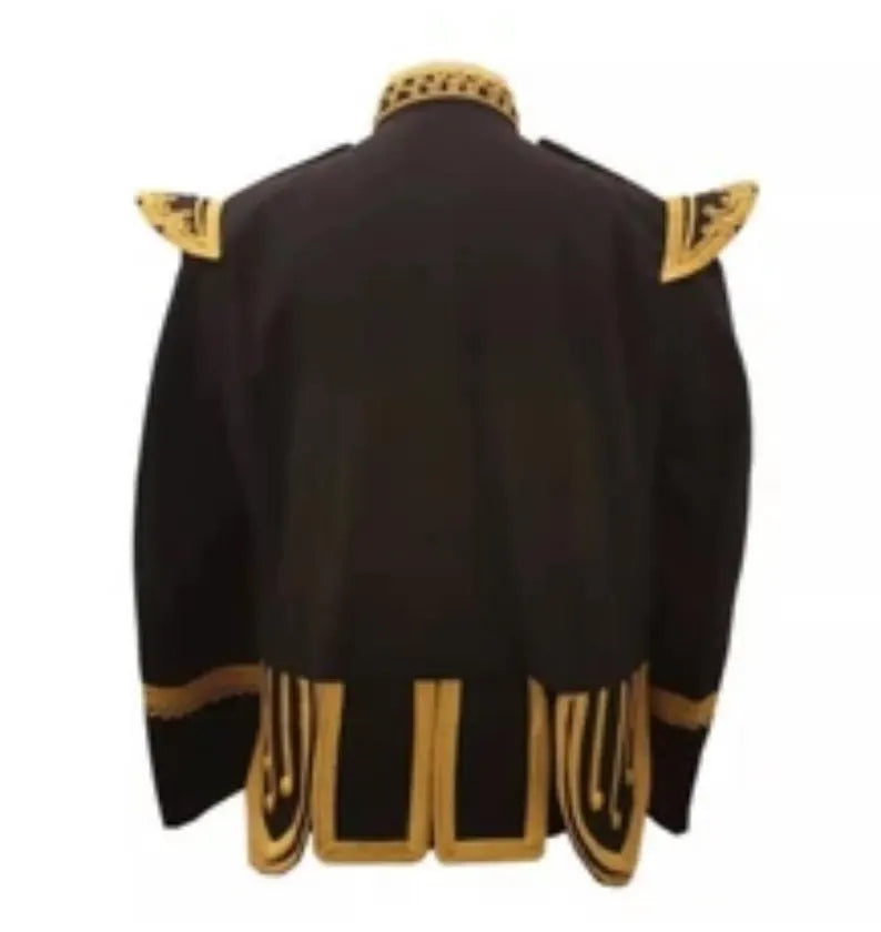 Men’s Scottish Highland Black Military Doublet – 100% Wool Drummer & Piper Kilt Jacket